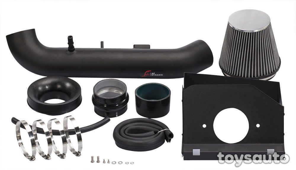 AF-Dynamic Cold Air Intake Kit complete with high-flow air filter and aluminum heatshield with insulation mat. The intake kit not only increases power, but will also provide better engine response compared to your restrictive stock air intake box. The included reflective insulation mat material, when added to the heatshield, further reduces intake temperatures and heat soak from the engine bay.