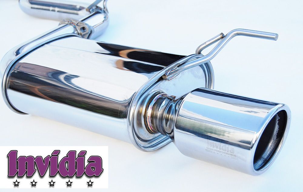 BRAND NEW IN BOX - Invidia 300Q Cat-back exhaust system -The flat bottom shaped muffler design results in improved high speed aerodynamic performance. The muffler inside contains continuous piping design and use of Advantex material that results in an excellent free-flow exhaust with optimized back pressure, giving greater horsepower, torque gains and a rich deep sporty sound. The use of SUS304 polished stainless steel piping, Mandrel bent to shape, state of the art CNC machine made flange, Robot TIG welding and double wall polished stainless steel or Titanium tips, provides outstanding durability and appearance.