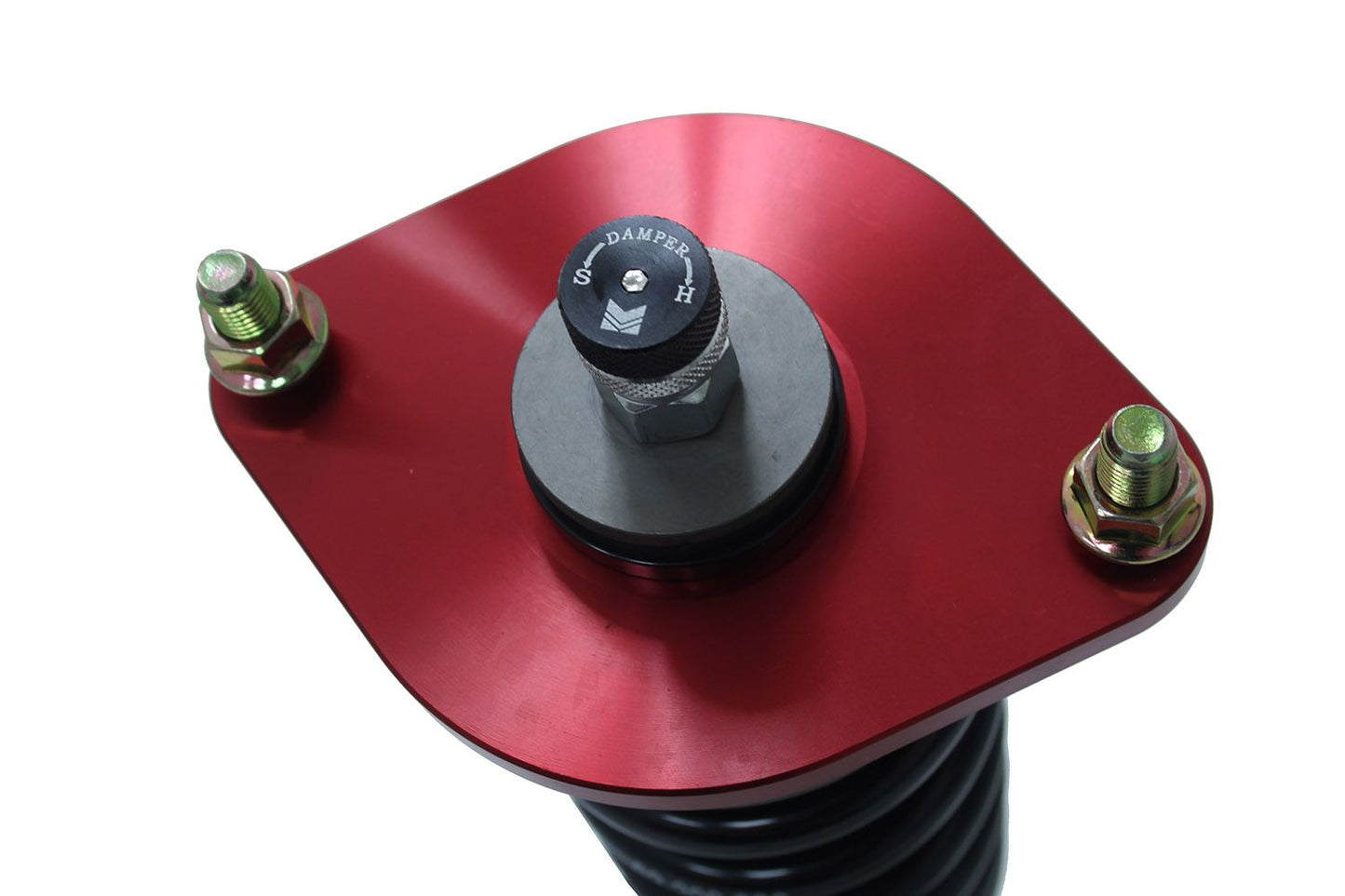 Compression and rebound settings are easily adjusted through a single damper adjustment knob which is built-in at the top of the damper mount for easy access. Adjustments are simple to tune according to your style of driving and desired comfort level whether you are a professional certified mechanic or an automotive enthusiast with amateur mechanical skills. All of our dampers are capable of handling a +2kg/mm or -2kg/mm change in spring rates to further tune your suspension to your desired handling characteristics.