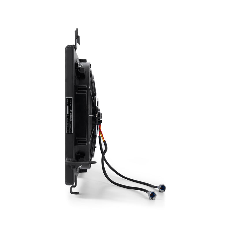Free up some engine bay space with the Mishimoto Subaru WRX/STI Plug-N-Play Aluminum Fan Shroud Kit! This kit bolts directly to your stock or Mishimoto performance radiator, and works perfectly with the OEM coolant overflow tank. The brushed aluminum fan shroud is preassembled with two 12-inch high-flow fans, and prewired with factory-style connectors. This plug-n-play kit requires zero splicing, soldering, or crimping and bolts into place just like the stock fan shroud setup. Each fan provides over 1150 CFM of airflow, which effectively keeps hot engine temperatures at bay. Thanks to a slim profile, this fan shroud has a maximum depth of just 3.5-inch that saves significantly more engine bay space. This kit includes all hardware for installation and the Mishimoto Lifetime Warranty, ensuring superior product quality and craftsmanship.