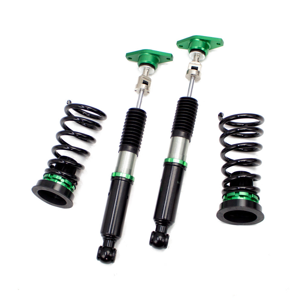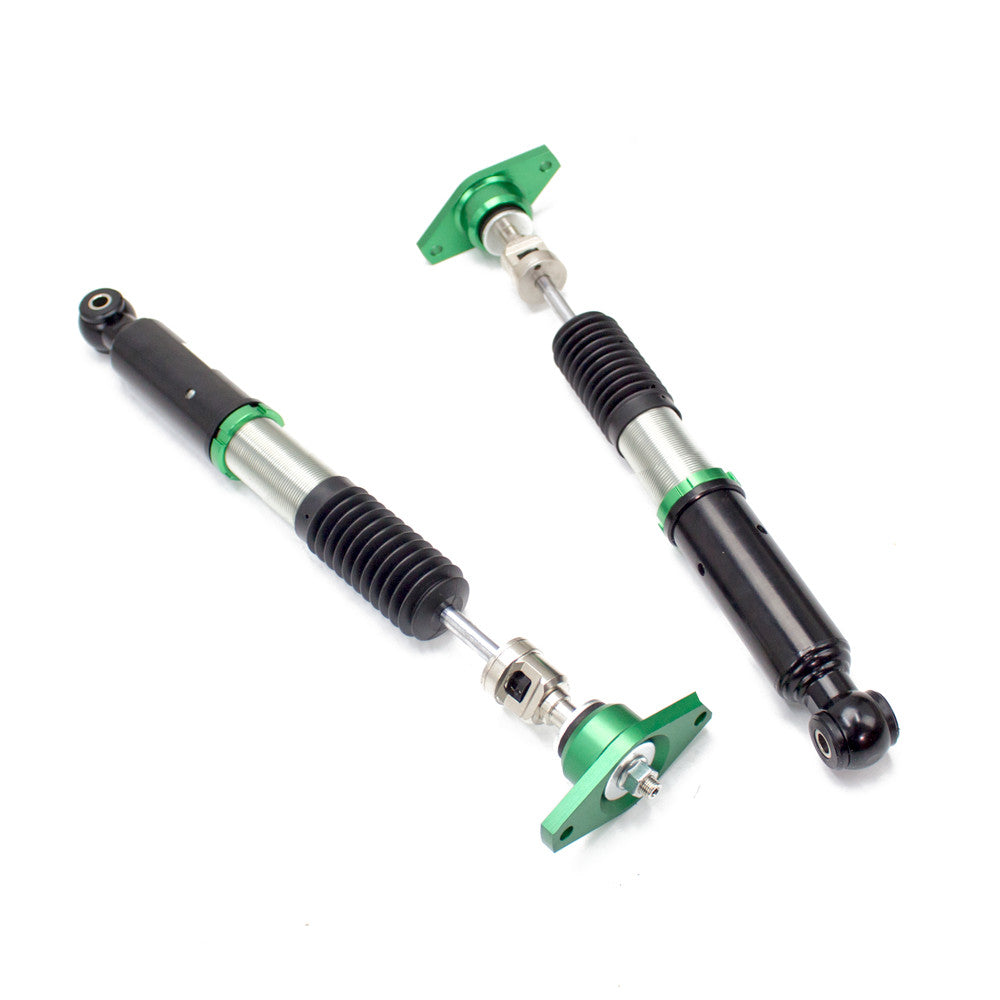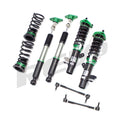 Hyper-Street II coilover suspension upgrade features mono-tube shocks with 32 clicks rebound settings and full length adjustable. Mono-tube shocks provides larger capacity for gas and oil to improve comfortable level of typical lowering vehicle. Special 32 clicks of valving allows user to fine tune rebound force settings. Independent spring tension and full length adjustable allows drop without sacrifice comfort by shorten pitch distance.