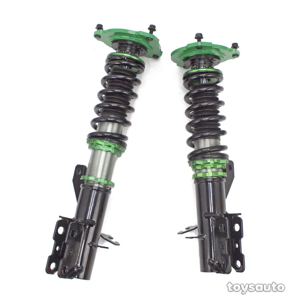 Hyper-Street II coilover suspension upgrade features mono-tube shocks with 32 clicks rebound settings and full length adjustable. Mono-tube shocks provides larger capacity for gas and oil to improve comfortable level of typical lowering vehicle. Special 32 clicks of valving allows user to fine tune rebound force settings. Independent spring tension and full length adjustable allows drop without sacrifice comfort by shorten pitch distance.