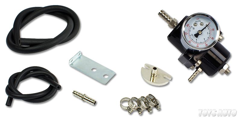 Rev9 Universal Turbo Fuel Pressure Regulator + Gauge w/ Hose Black