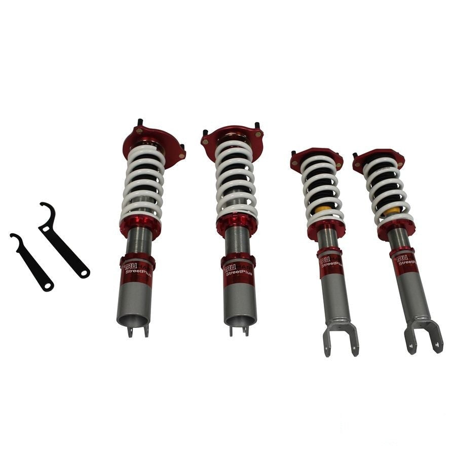 Featuring a full monotube design with integrated aluminum top mounts, the StreetPlus coilover is an ideal solution for today's budget-minded tuner looking to lower their vehicle and increase handling performance. The independently adjustable lower mount allows fine tuning of a vehicle's height without sacrificing shock travel, resulting in a sporty yet comfortable ride on the street or strip.